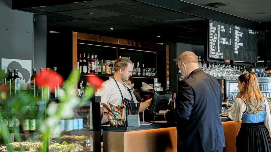 Lokalet byr på en uformell stemning, og er et populært valg for både lokale gjester, og hotellets.