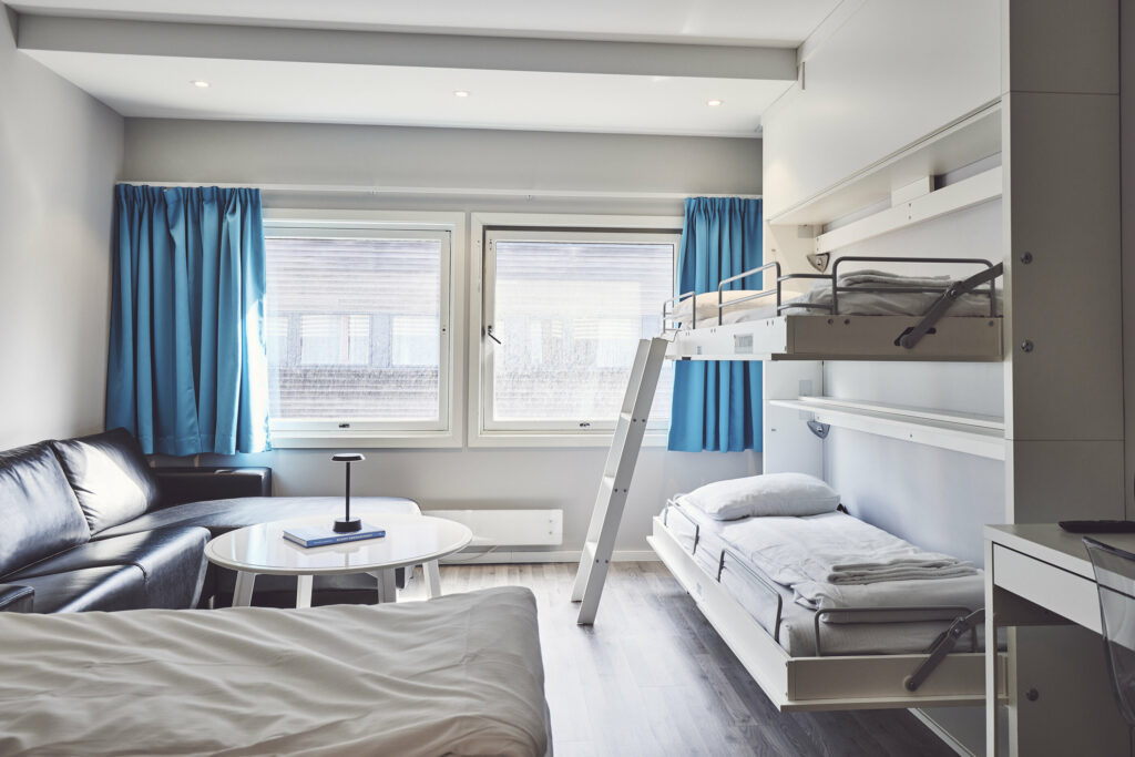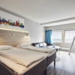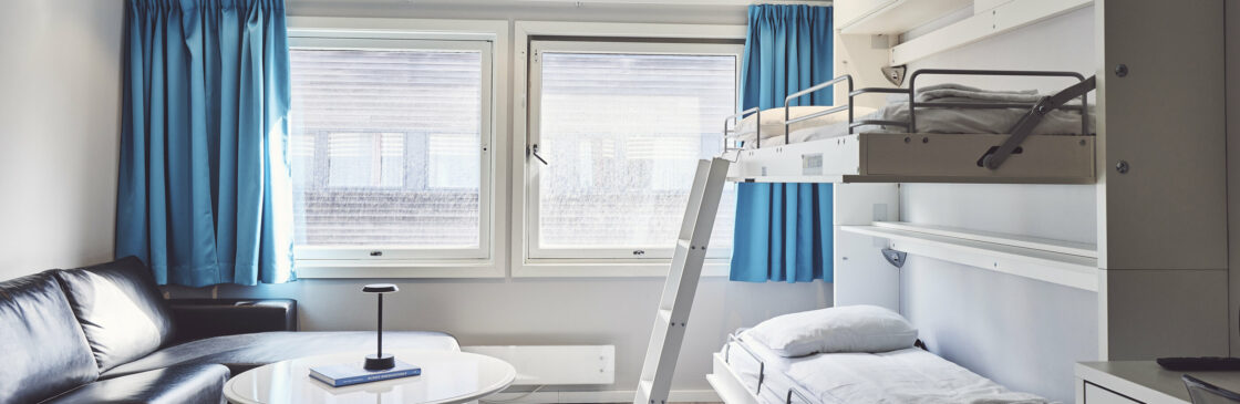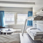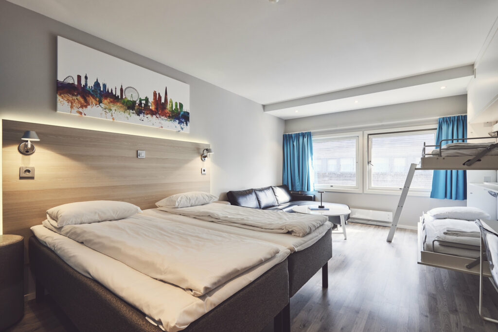 På våre helt nye populære familierom kan hele familien være samlet på et rom på 25 kvm. Rommet har to enkeltsenger (90 cm x 2) og en køyeseng, samt at det er god plass til en ekstraseng til. Badet er romslig med to vasker slik at tannpussen går i en fei! Disse rommene passer også utmerket for idrettslag på tur.