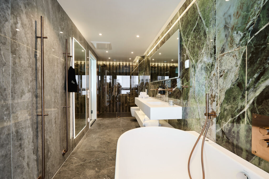 Soverommet er utstyrt med walk-in garderobe, arbeidsbord og TV, og suiten har selvsagt alt av moderne fasiliteter: aircondition, minibar, Nespresso kaffemaskin, gratis WiFi og mer.