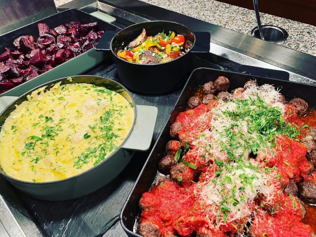 Vår Italienske Aften er en kulinarisk reise gjennom Italias mange regioner – med en buffet full av klassikere som får både ganen og hjertet til å smile. Start kvelden med delikate forretter som Vitello Tonnato, den ikoniske Caprese-salaten med mozzarella, tomat og basilikum, og et fristende utvalg av autentisk spekemat som smelter på tungen.