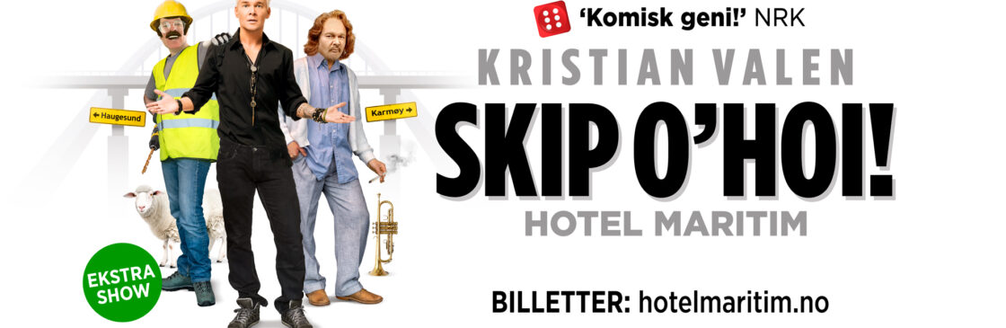 Kristian Valen til kai i Maritim Hall igjen i februar med ekstrashow på sitt splitter nye show «Skip O’Hoi» – laget for, om og med Haugalandet! En unik kveld kun for Haugalandet – ingen storbyturister, bare for de som skjønner humoren, dialekten og poengene.