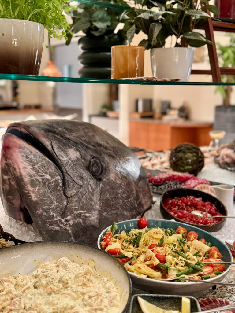 Vår søndagsbuffet er kjent for sitt store koldtbord med blant annet sjøkreps, blåskjell, laks fra Espevær og mye annet fra sjø og land.